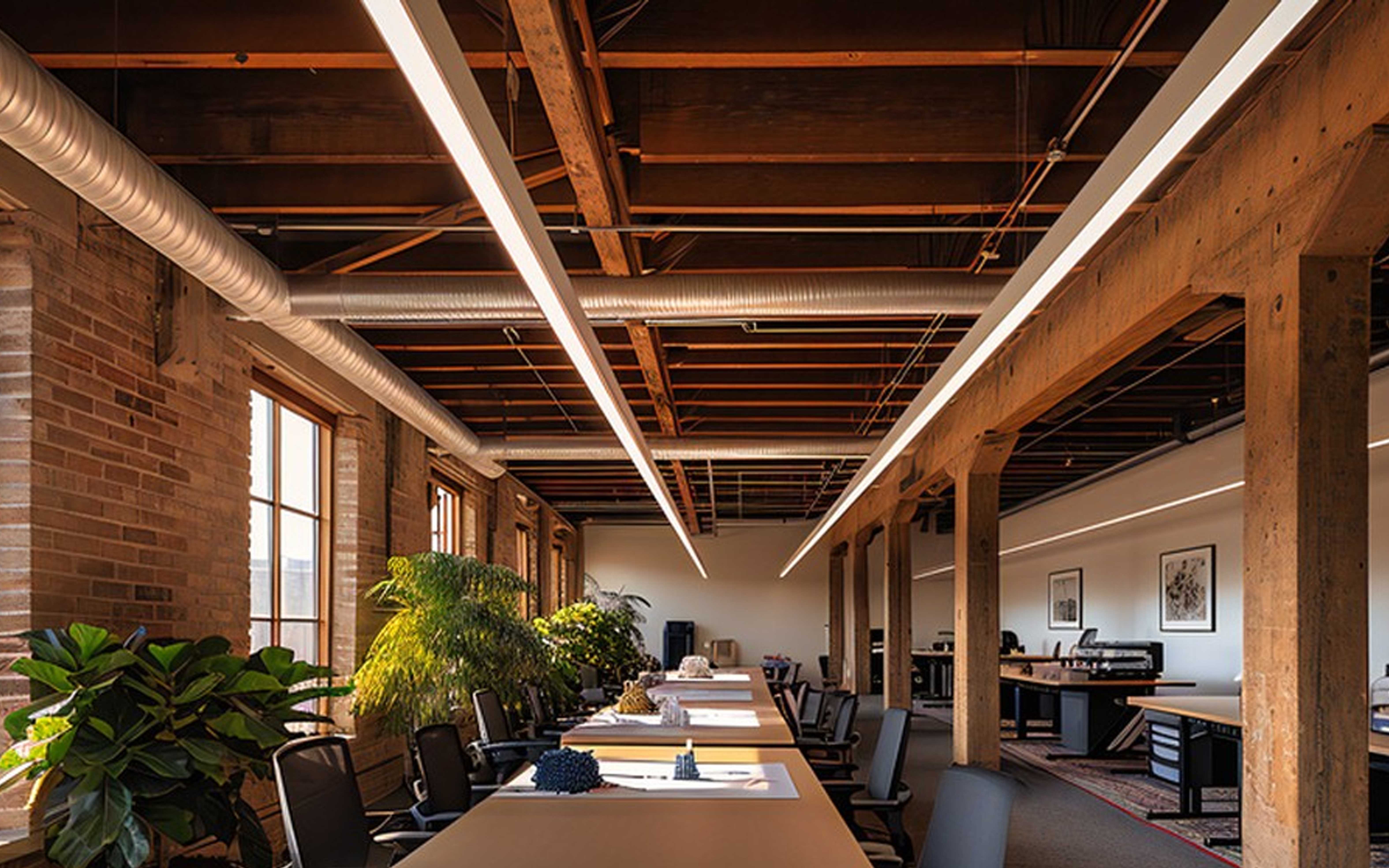 办公桌的设计真像极了都市中的咖啡厅。置物架上摆上小盆栽,暖黄色小灯和亮白色主灯相结合,不仅让光线充足,更是营造了舒适的氛围。灯具的选用,格式布局都非常华丽。